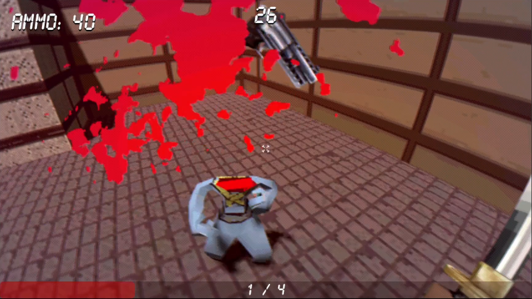 It is the best shooter I played from the jam so far! Stands out from all the "kill your past self" ones and the absence of friendly fire just makes it more fun. Sound design is on point. Guns are different and fit different situations, the last level forcing the player to change them constantly. And katana is simply the best, scaling the buildings and ripping through enemies was satisfying, even if hard to control